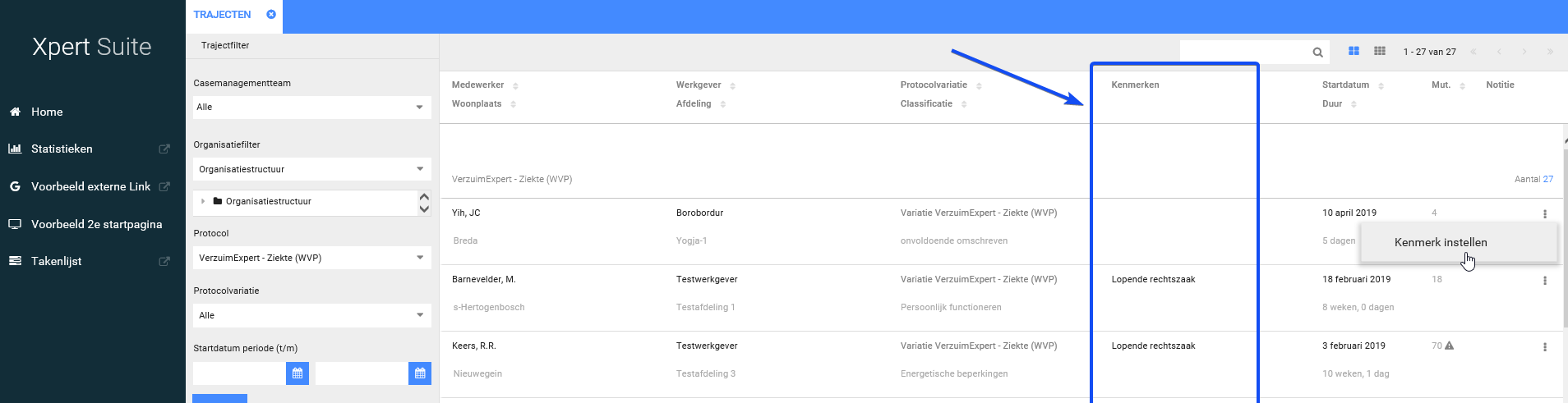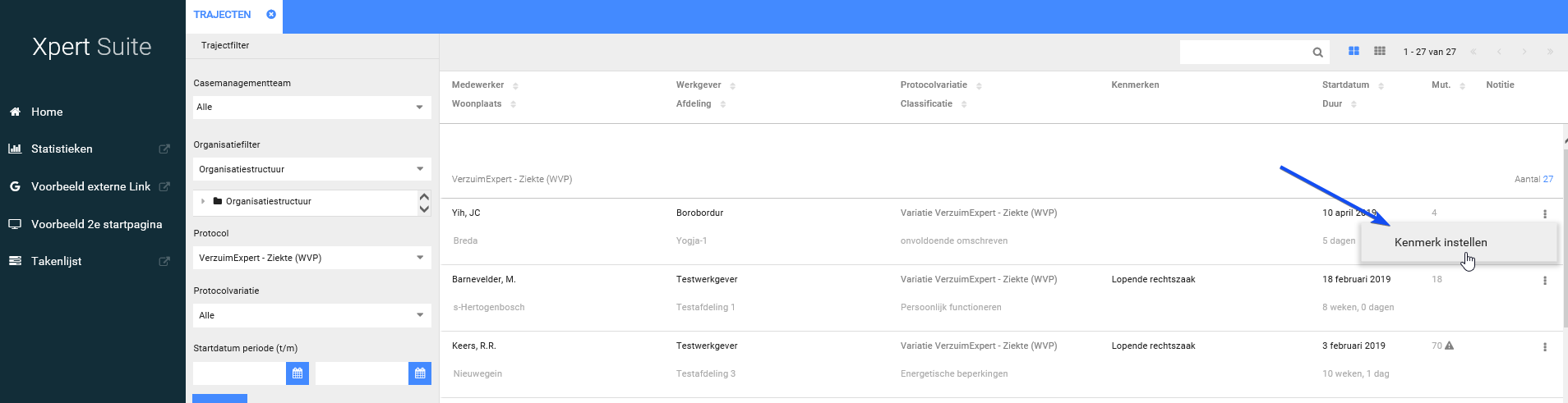 Stap 1. Ga naar het Trajectenoverzicht en kies via de drie puntjes rechts voor Kenmerk instellen. Vul het kenmerk in.