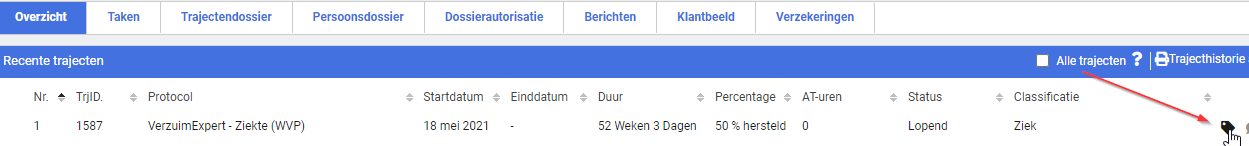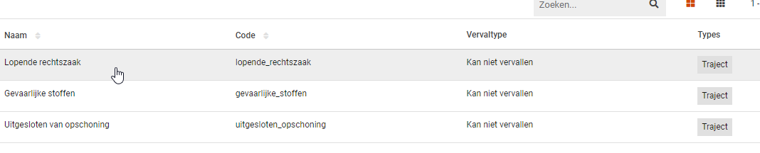 Stap 2. Reeds ingestelde kenmerken zijn in het Trajectenoverzicht meteen inzichtelijk.