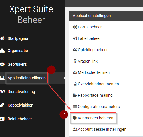 In Xpert Suite kunnen zogenaamde kenmerken toegekend worden aan verschillende entiteiten, namelijk: werkgevers, afdelingen, werknemers en trajecten. Voorbeelden van bestaande kenmerken zijn: Gevaarlijke stoffen, Lopende rechtszaak en Uitgesloten van opschoning. Daarnaast zijn er kenmerken toe te voegen.