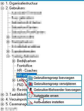 Rechter muisklik op de gebruikersgroep, kies vervolgens voor Autorisatie erven.