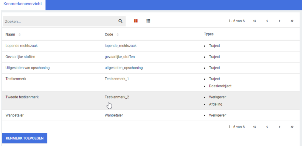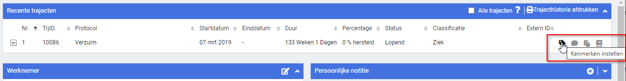 Het toekennen van kenmerken aan trajecten kan via het Trajectenoverzicht via het kenmerk-icoon.