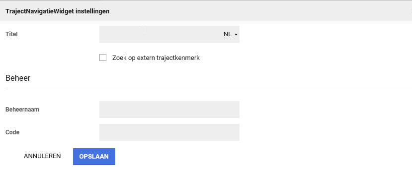 Momenteel is in te regelen dat d.m.v. de “trajectnavigatiewidget”, veelal gebruikt op de homepagina, nu ook gezocht kan worden op een externe trajectkenmerken.
