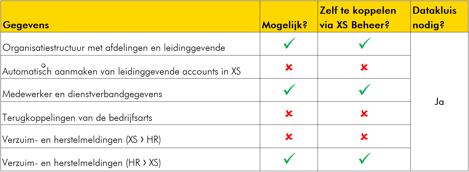 Je kunt de Xpert Suite ook koppelen met Loket.nl. Zie in de onderstaande tabel welke gegevensstromen we allemaal kunnen koppelen. En of je dit zelf kunt via XS Connect.