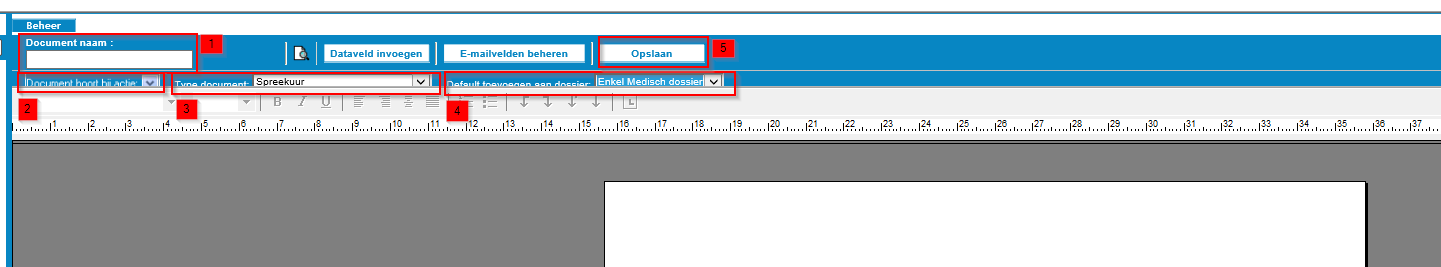 Een gebruiker ziet het document alleen als het daarvoor geautoriseerd is. Vul dit in voordat je documentsjablonen gaat toevoegen. Zodra een .dotx sjabloon is ingesteld, kun je niet meer instellen of het document toepasbaar is in het gevalsdossier of in het medisch dossier. Om dit toch aan te passen, zul je in Beheer bij Documentsjablonen het type document moeten terugzetten naar Classic rtf.