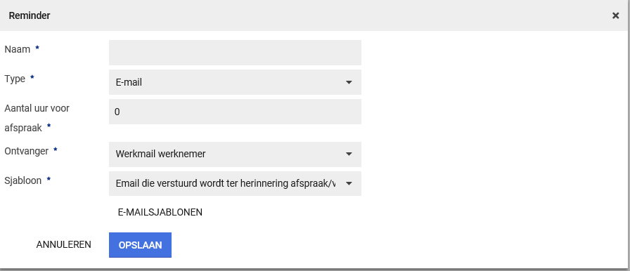 Hier kan een reminder ingesteld worden voorafgaand aan het spreekuur aan de ontvanger.