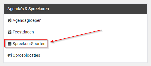 Stap 3. Kies vervolgens bij Agenda’s & Spreekuren voor Spreekuursoorten.