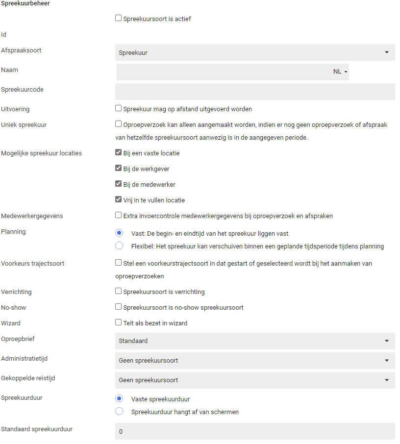 Deze opties kunnen gekozen worden voor de tijdsduur van het spreekuur.
