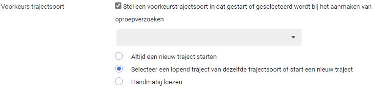 Met deze optie kan aangegeven worden of er ook direct een traject (van een bepaalde soort) gestart, of geselecteerd, moet worden. Bij deze optie zijn er drie subopties: