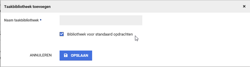 Je kunt hier een nieuwe taakbibliotheek aanmaken of kiezen uit een bestaande taakbibliotheek.