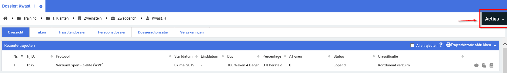 Stap 1. Open het dossier en klik op de knop Acties.