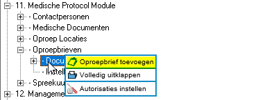 In het klassiek beheer vind je onder 11. Medische Protocol Module de optie om een oproepbrief toe te voegen. Dit doe je door met de rechtermuisknop documenten te gaan staan en te kiezen voor ‘Oproepbrief toevoegen’.