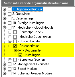 Autorisaties voor de oproepbrieven worden gevonden op pagina 2 op gebruikersniveau.