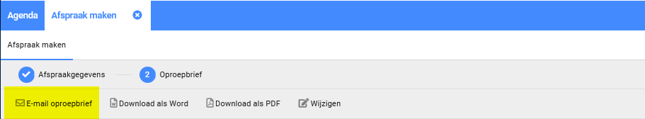 Eenmaal het spreekuur opgeslagen en de oproepbrief gekozen zul je het volgende scherm te zien krijgen.