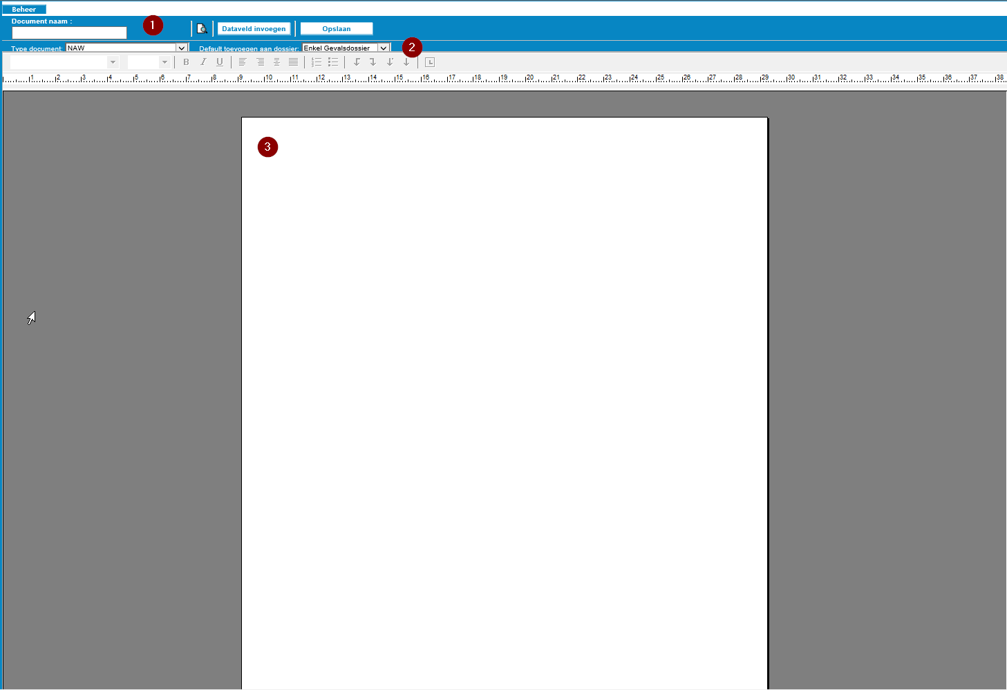 De oproepbrief vullen via RTF gebeurt in het klassieke beheer.