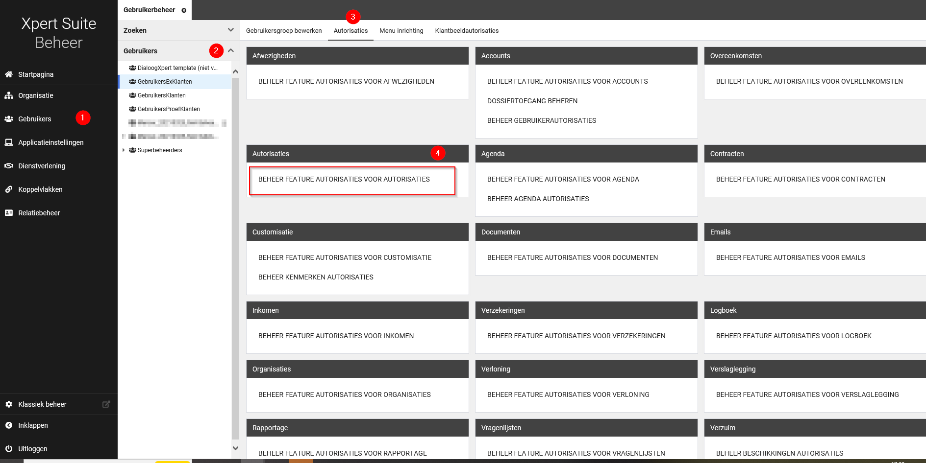 - Kies de juiste gebruikers(groep), dan naar autorisaites tab: