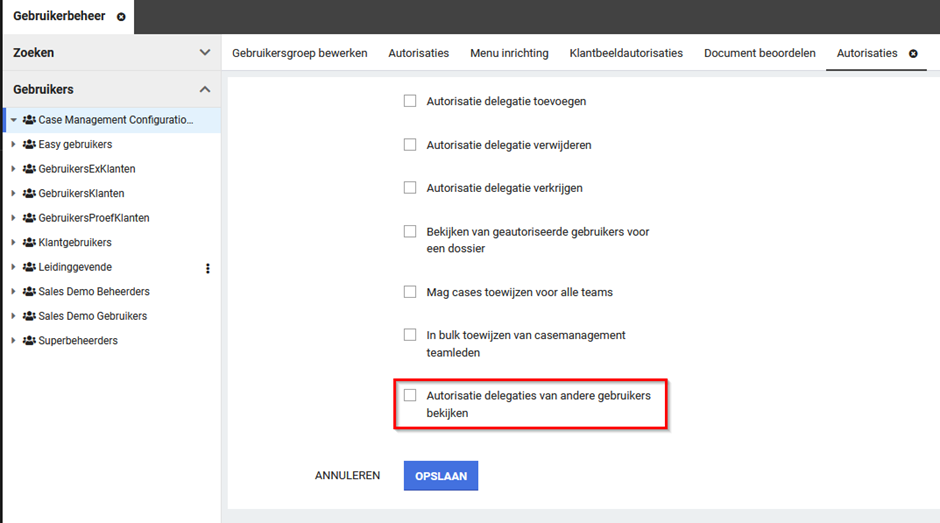 Het zien van een dossierdelegatie van een andere gebruiker alleen mogelijk met een nieuwe autorisatie in het Autorisaties domein.