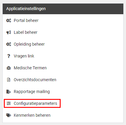 - Ga naar beheer > Applicatie-instellingen. Open hier ‘Configuratieparameters’