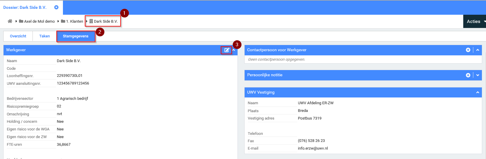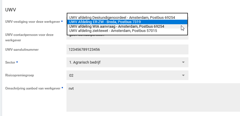 Bij een werkgever kun je vastleggen met welke UWV vestiging zij in contact staan.