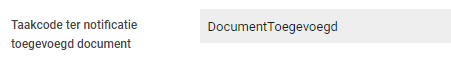 Het is mogelijk om een taak in te richten zodat er bij ieder document dat wordt geïmporteerd een taak verschijnt. Via taakbeheer kun je een nieuwe taak aanmaken. Bij deze taak kun je een ‘Taakcode’ invoeren. Deze code kun je ook invoeren bij de custom mapping van de koppeling.