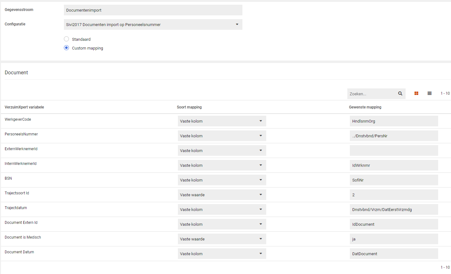 SIVI is een gestandaardiseerde koppeling, waardoor er weinig mogelijkheden zijn om de mapping aan te passen. Veel velden staan alvast ingevuld omdat deze altijd op dezelfde manier gemapt dienen te worden. Een aantal zaken kun je aanpassen indien dat wenselijk is.