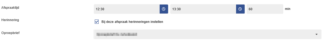 Je zult zien dat wanneer je standaard een reminder hebt ingesteld op een spreekuur dit vinkje automatisch aan zal staan. Mocht je dit per spreekuur apart willen doen heb je altijd de mogelijkheid om dit vinkje handmatig aan of uit te vinden.