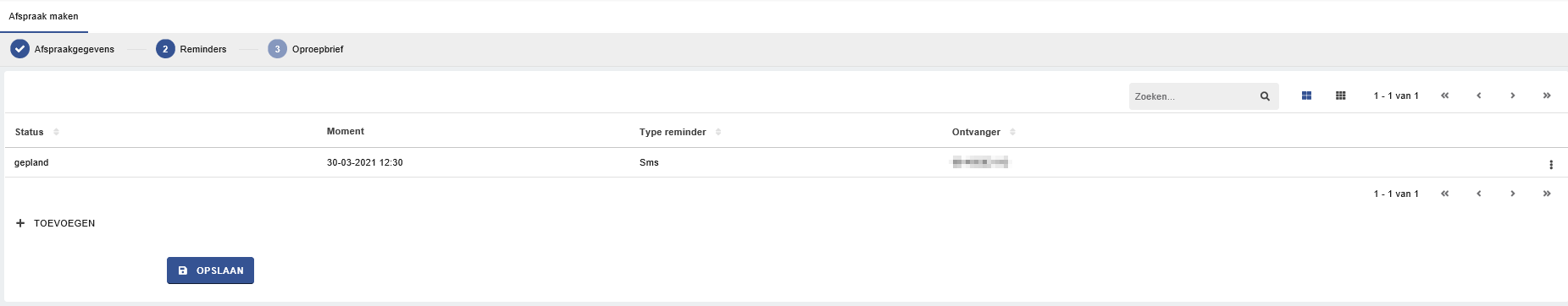 Hier zul je zien dat de gegevens van de reminder zijn gevuld en je ook ziet naar welke emailadres/telefoonnummer het verzonden zal worden. Klik op opslaan en je bent klaar.