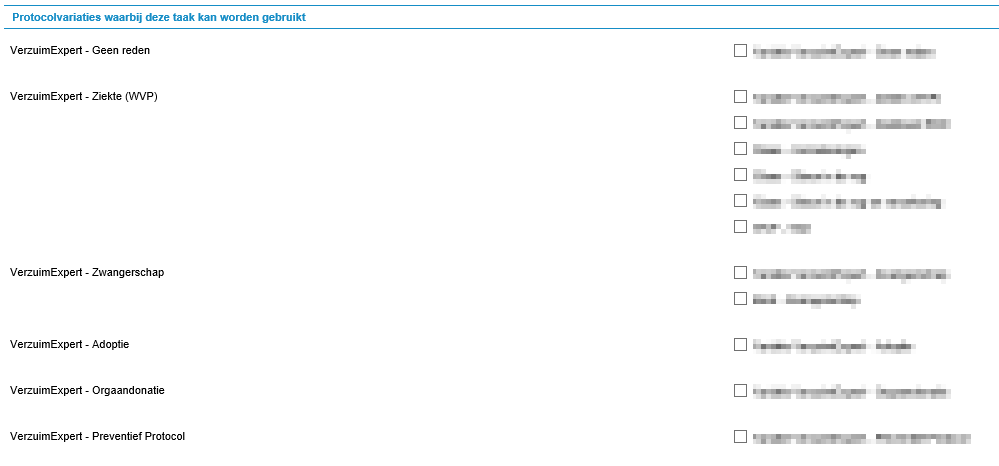 - Stap 13. Geef aan bij welke protocolvariaties de standaard opdracht gebruikt kan worden. Vink je niets aan, dan is de opdracht nooit te selecteren.