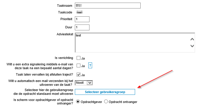 - Stap 16. Autoriseer de juiste gebruiker(s)(groep)(en) voor de nieuwe standaard opdracht. Lees hier hoe dat werkt.