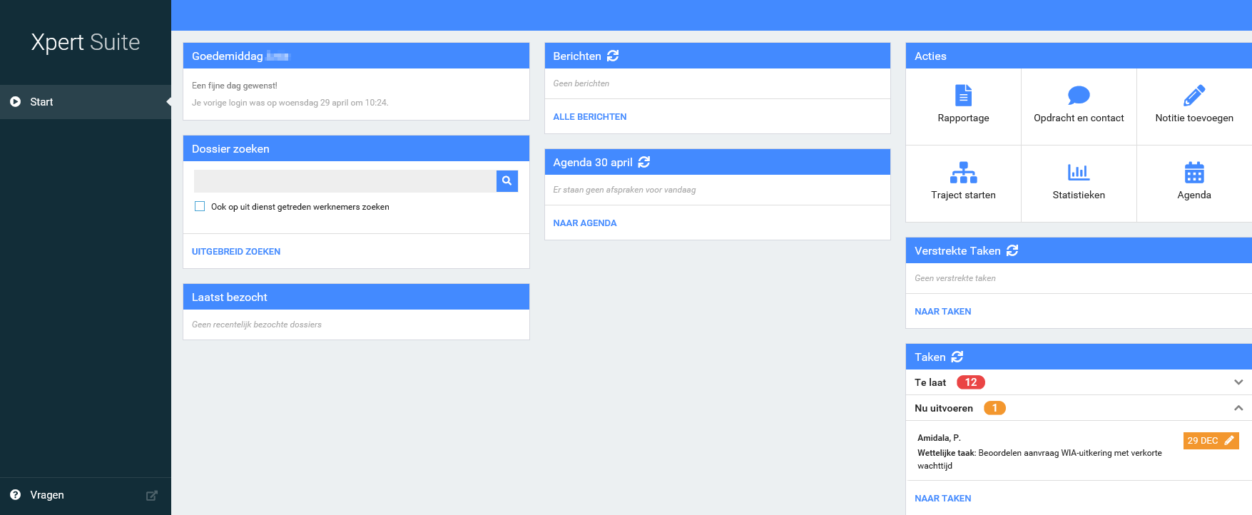 Deze lay-out (ook wel widgetoverview genoemd) bevat de belangrijkste XS functionaliteiten die de gemiddelde gebruiker nodig heeft. Dit portaal kan daarmee als vertrekpunt dienen voor die gebruikers, die niet geholpen zijn met de specifieke portalen die in de voorgaande secties beschreven staan. Dit portaal kan vervolgens nog worden uitgebreid met specifieke schermonderdelen en / of actieknoppen al naar gelang de behoefte van de betreffende gebruikersgroep.
