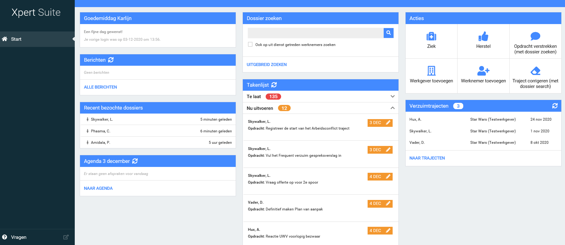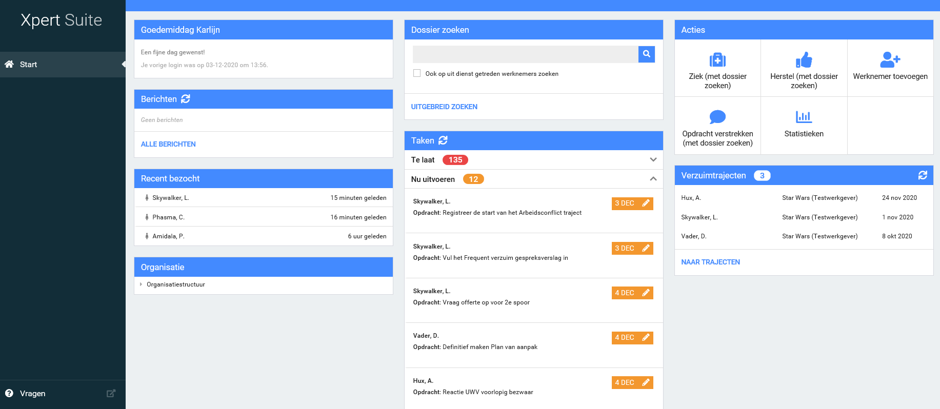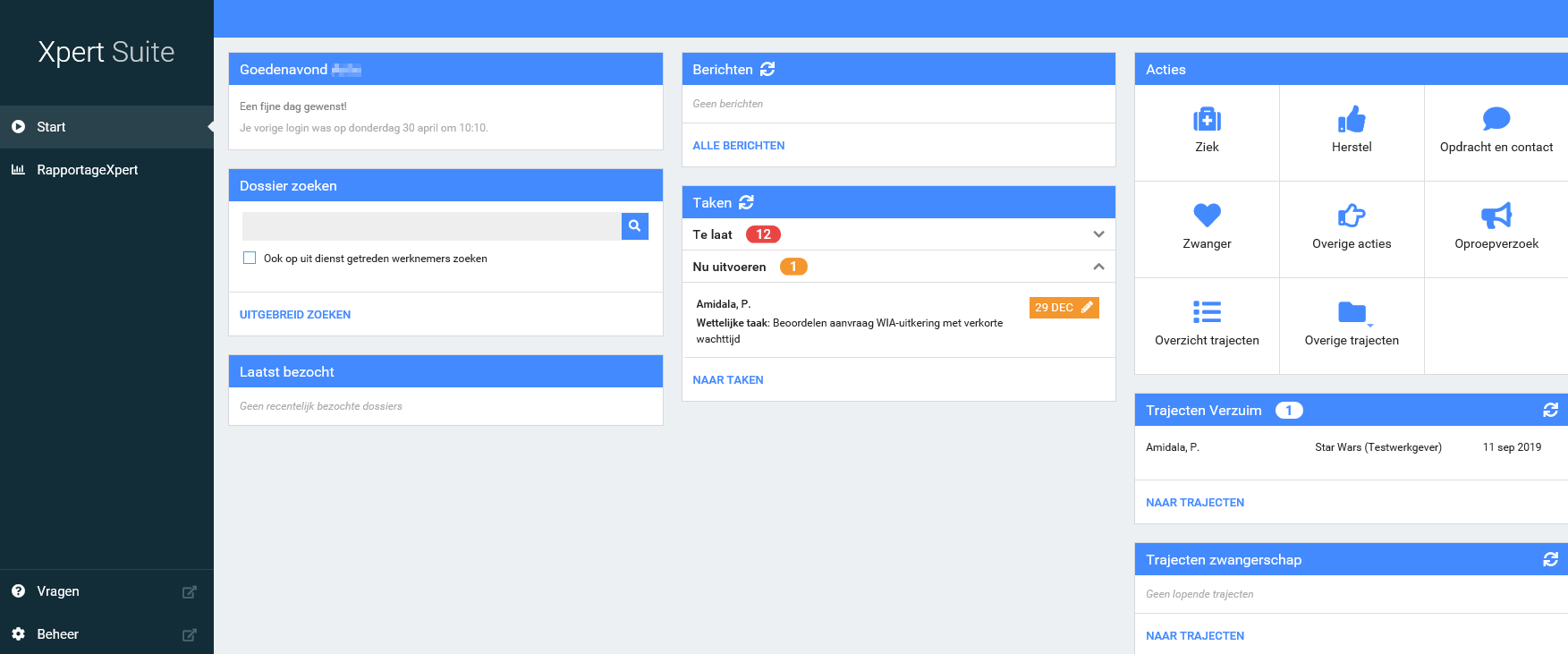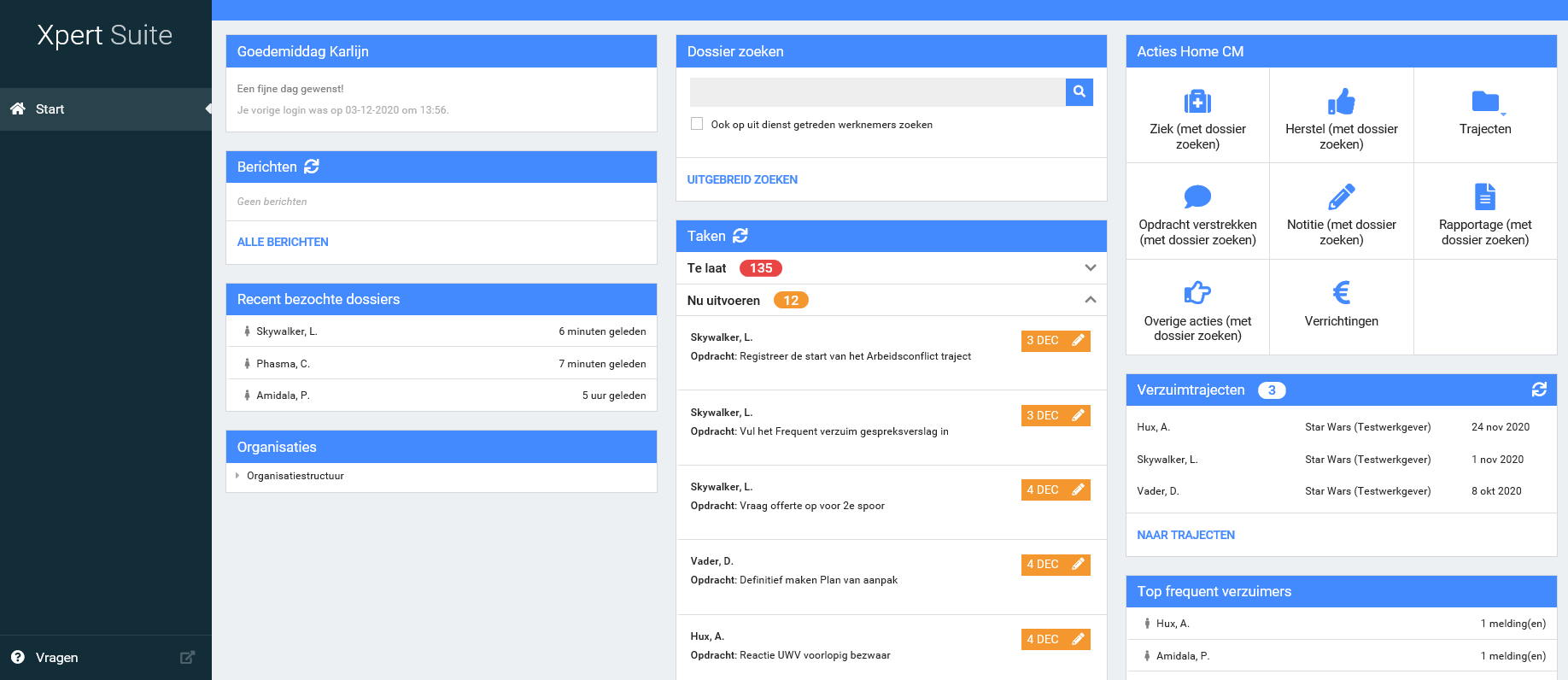 In release 6.40 Pascal is een set Standaard (voorgeconfigureerde) Portalen beschikbaar gekomen voor de meest voorkomende gebruikersgroepen van ons platform (bedrijfsarts, casemanager, klant, …). Deze portalen zijn één op één te gebruiken voor jouw eigen gebruikers of kunnen als inspiratie dienen voor de inrichting van eigen portalen en zijn herkenbaar aan de toevoeging “XS_”.