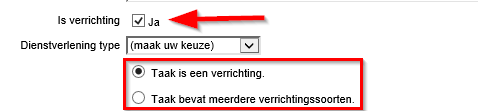 Stap 2. Vink aan Is verrichting. Kies daarna of de taak zelf een verrichting is, of dat je meerdere verrichtingen aan de taak wilt koppelen. Bij het uitvoeren van de taak kan de gebruiker kiezen welke verrichting wordt uitgevoerd.