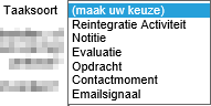 Bij het aanmaken van nieuwe taken kun je kiezen uit verschillende taaksoorten.
