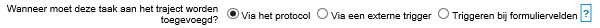 Laat nieuwe triggertaken altijd op "via het protocol" staan. Je kunt daarna in nieuw beheer via de functionaliteit "Triggers" de trigger instellen. Dit is te vinden in beheer onder Dienstverlening - Dienstverlening: