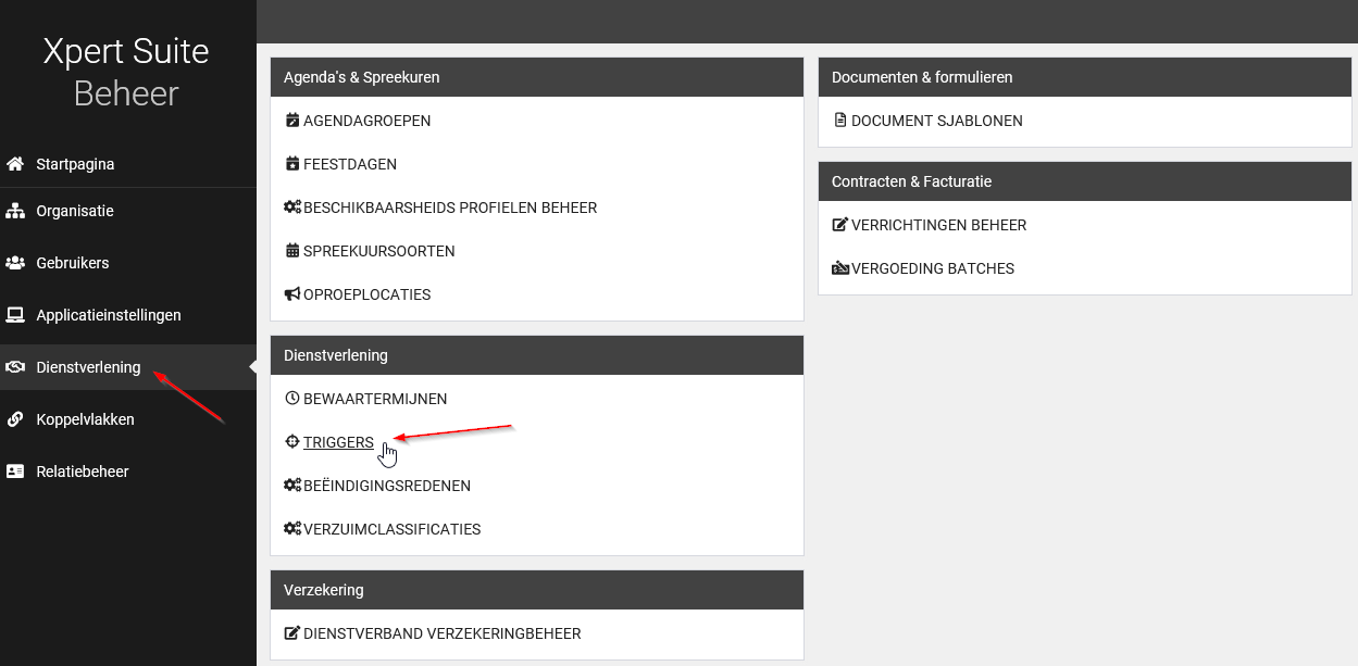 Deze functie wordt op dit moment uitgeschakeld en dient niet meer gekozen te worden. De juiste werkwijze voor het inrichten van triggers gaat via de functionaliteit “Triggers”.