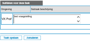 Deze is vaak gelijk aan de tekst bij VX Prof (Subtaak beschrijving). Deze tekst wordt zichtbaar wanneer je bij een taak op het vraagteken klikt.