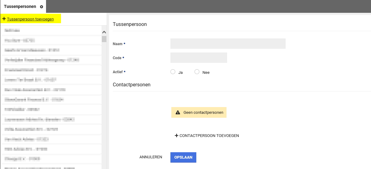 Stap 2: Klik op 'Tussenpersoon toevoegen', vul de gegevens in en klik op opslaan