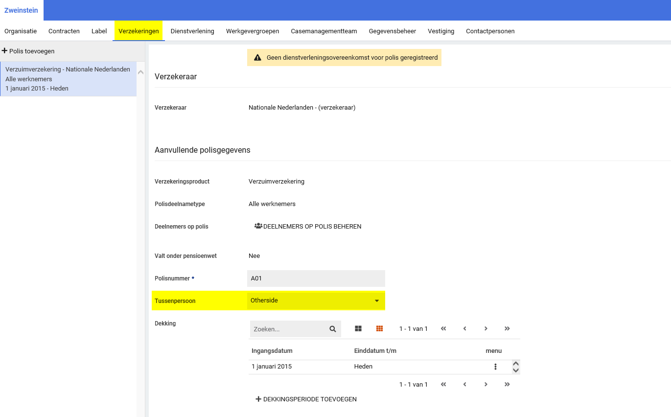 Tussenpersoon aan polis toevoegen