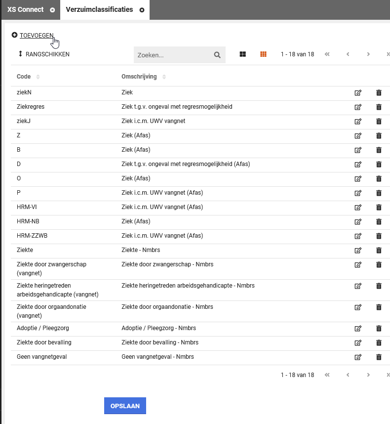 Toevoegen nieuw verzuimclassificatie
