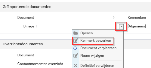 Je kunt een document inzichtelijk maken voor een andere gebruiker door het kenmerk van het document te wijzigen naar een kenmerk waarover deze gebruiker wel autorisatie heeft.