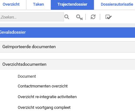 Er kunnen ook aanvullende overzichtskaarten aangemaakt worden, zoals een aparte Overzicht voortgangskaart die alleen de arbodienstverlener mag zien. Indien je een overzichtsdocument wil toevoegen, neem dan contact op met onze Xpert Desk.