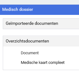 - Geïmporteerde documenten en Overzichtsdocumenten van het Medisch dossier
