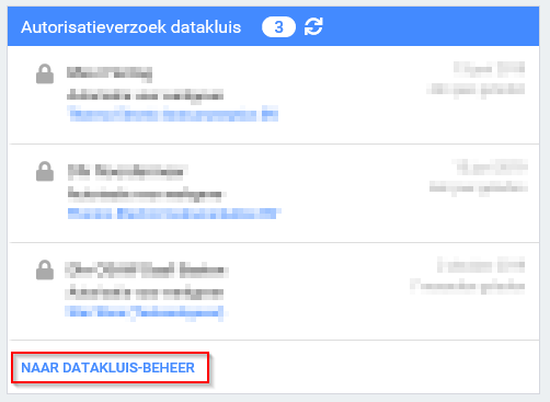 Datakluis-beheer open je door in de Widget Autorisatieverzoek Datakluis op Naar Datakluis-beheer te klikken.