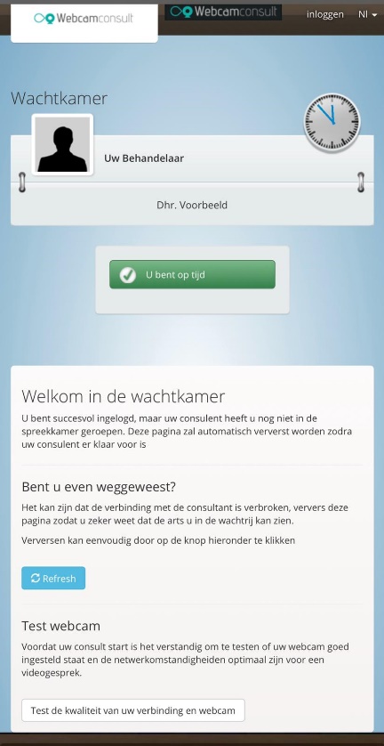 Wanneer de client binnen 30 minuten voor begintijd van de afspraak op de link klikt, dan komt hij in de wachtkamer.