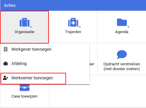 Vaak is de knop 'Werknemer toevoegen' beschikbaar, of staat deze onder een andere actieknop als onderliggende actie: