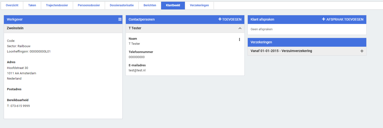 In het overzicht klantbeeld zie je verschillende widgets met werkgeverinformatie.