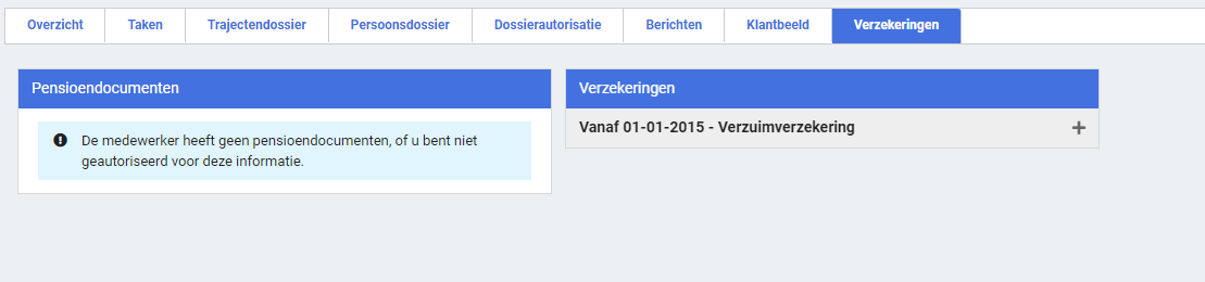 Hier vind je informatie over de pensioencommunicatie en over de verzekeringen waar de werknemer op is ingesloten.