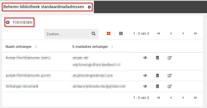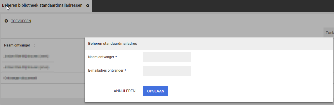 Stap 2. Het onderstaande scherm opent, en je kiest vervolgens voor de optie 'Toevoegen'. Hier vul je vervolgens het mailadres en een benaming voor je standaard afzender in.