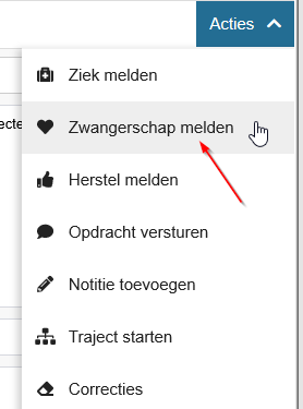 Stap 2: klik op de knop Zwangerschap melden bij acties.