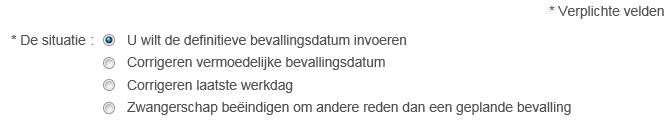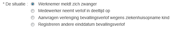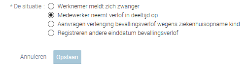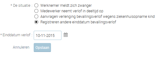 - Selecteer de optie “registeren andere einddatum bevallingsverlof”;