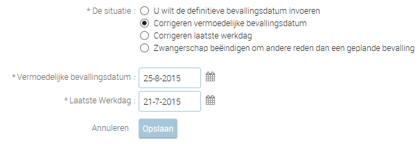 - Vul de correcte vermoedelijke bevallingsdatum in;